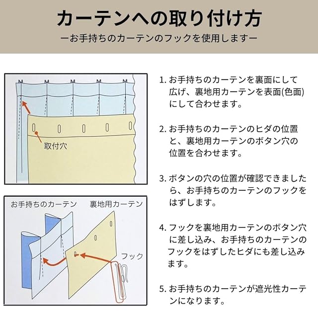 遮光カーテンライナー「遮光性裏地用カーテン(2枚組)」【UNI】幅105×丈195cm2枚組(#9801819) 取り付け簡単 幅105cm
