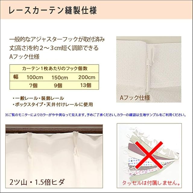 付属品:丈を約2~3cmまで短く調節できるアジャスターフック(Aフック)がセットされていますので、すぐにご使用頂けます。(共布タッセルは付属していません)