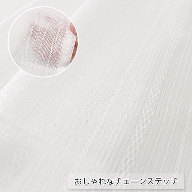 ナチュラルなホワイト地にチェーンステッチが入ったちょっぴりおしゃれなカーテンです。レースカーテンらしい透けぐあいで日中の光の入り方がとてもキレイです。