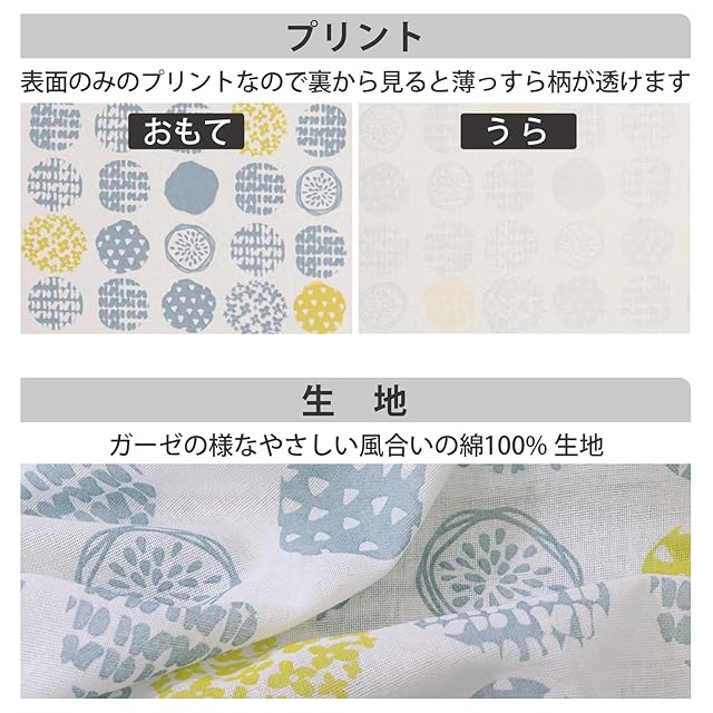 ■こちらの商品はプリント生地をカットして縫製しております。カットした場所により商品ごとに柄の出方が異なります。複数枚を並べてご使用になりますと柄の並びが揃わない場合がございます。予めご了承ください。