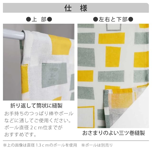 【取り付け方】お手持ちのつっぱり棒(ポール直径2cmまでがおすすめ)などに通してご使用ください。※つっぱり棒は別売り