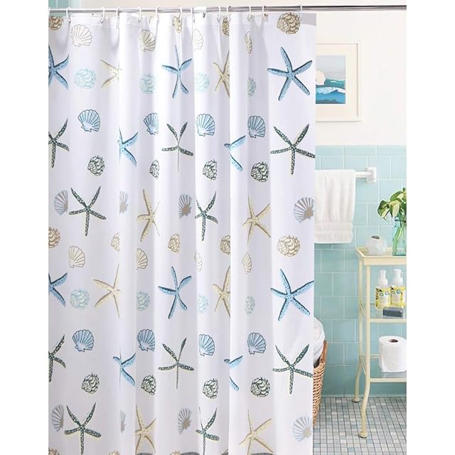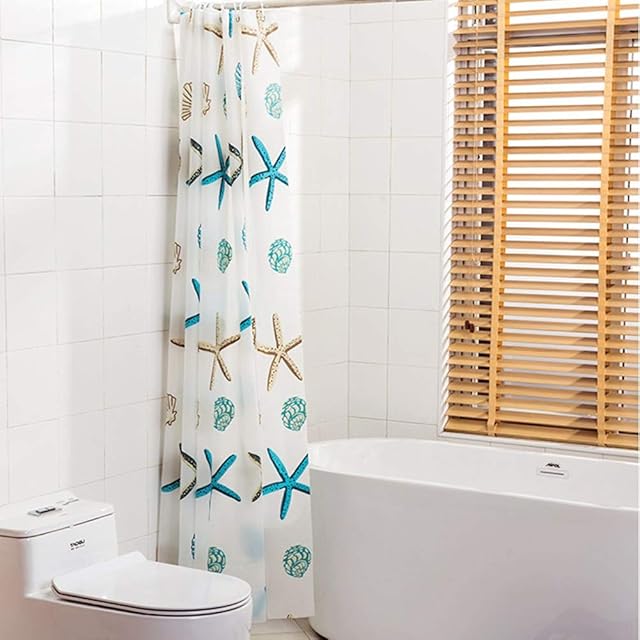 Meioro シャワーカーテン バスカーテン PEVA ホワイト 防水 防カビ 加工 ヒトデ 風呂カーテン 浴室 カーテン 洗面所 ユニットバス リング付属 厚手 取付簡単 サイズ選択可能 (150x180cm) | ascend