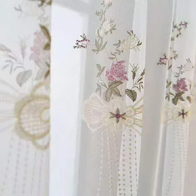 カントリーカーテン 女の子部屋のために薄手の刺繍された花のレースのカーテン トランスペアレント 結婚式の部屋のためのボイルチュールカーテン ガラス引き戸 バルコニーリビングルームのウィンドウトリートメントドレープ2枚組ピンク幅150*丈178cm | ascend