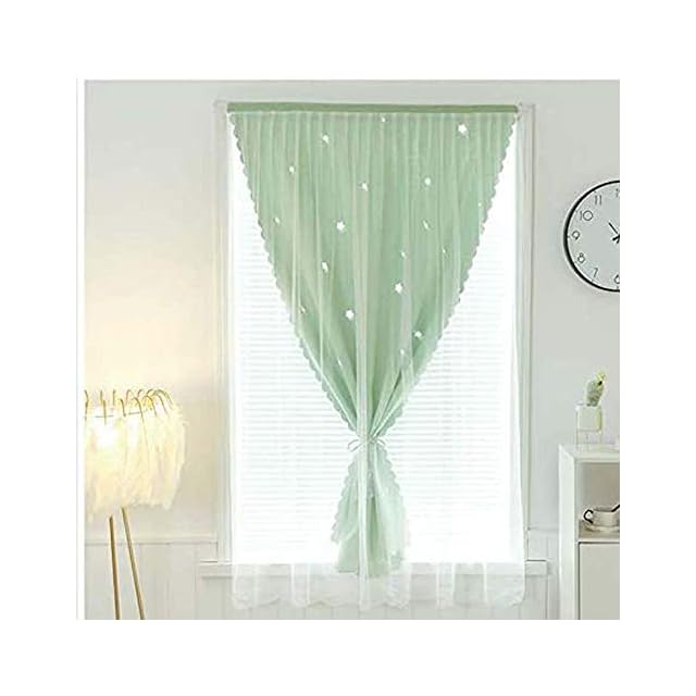 【おしゃれ】姫系遮光カーテン、レーザー切断技術より彫り出す星柄から透かし光がおベッドや床や壁などに落ちて、室内はまるで夜空に輝く星たちが煌めいてくれます。ベッドに寝る時ぐらい好きな星空を感じでき。