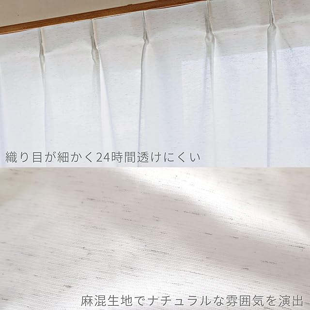 カーテン研究所≪遮熱・遮像リネン混レース ホワイト≫ 幅100cm x丈218cm 2枚組 節電対策 夜でも外から見えにくい 麻 プライバシー対策 UVカット 断熱 保温 洗える アジャスターフック付き シンプル | ascend