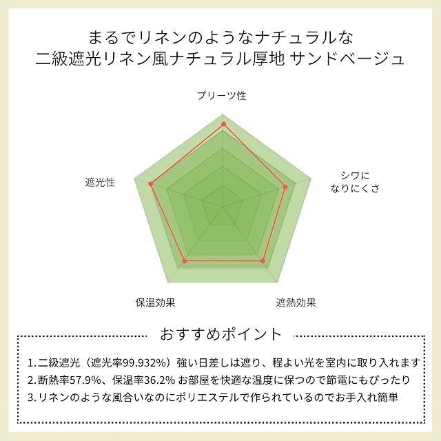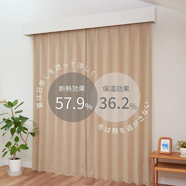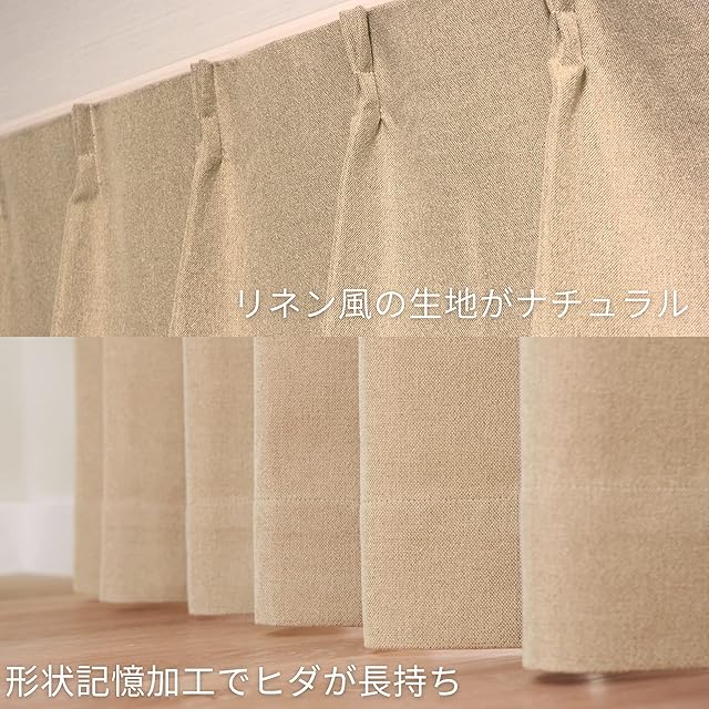 カーテン研究所≪二級遮光リネン風ナチュラル厚地 サンドベージュ≫ 幅100cmx丈210cm 2枚組 2級遮光 形状記憶 遮熱 保温 洗える ナチュラル 省エネ アジャスターフック付き シンプル | ascend