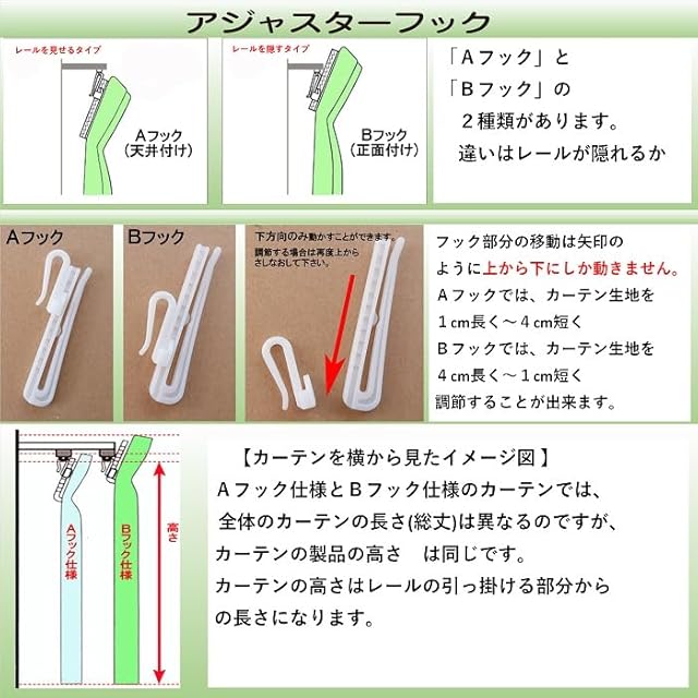 ◆アジャスターフック付き(Bフック)製品1枚につき7個。【別梱包:お客様ご自身での取付けが必要です】フックの調節で製品サイズに対して、-1cm+3cmの丈調節可能です。