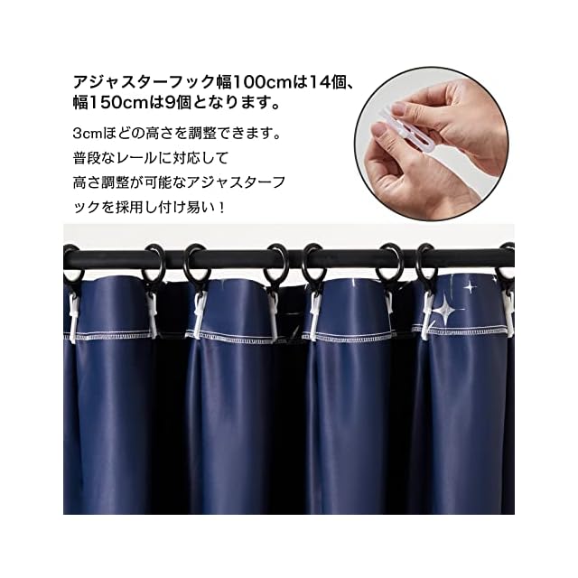 【注意・付属品】:アジャスターフックが付いています。幅100cmは14個、幅150cmは9個となります。(タッセル付きません、ご注意ください。)
