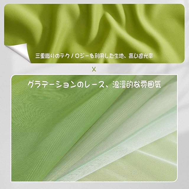 NICETOWN グリーンの遮光生地+レースカーテン カフェカーテン 二重の既成カーテン 仕切り おしゃれ ロマンチック 厚手 姫系 風を防ぐ 保温 寝室 幼児園 幅100cm丈110cm グリーン 2枚入り | ascend