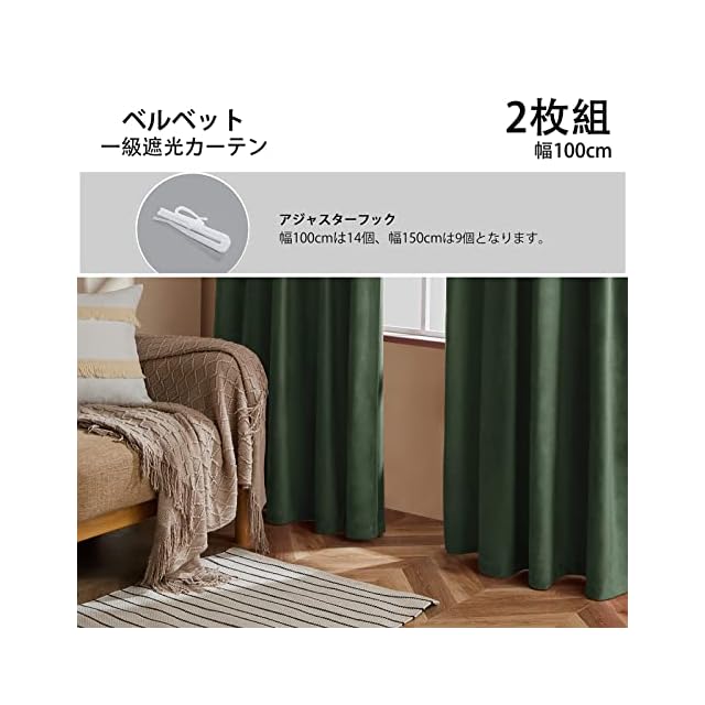 【注意・付属品】幅100cmは14個、幅150cmは9個となります。アジャスターフックが付いています。(タッセル付きません、ご注意ください。)