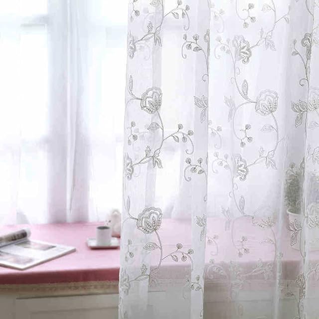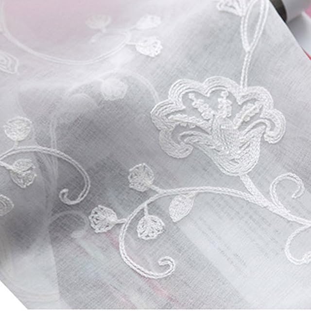 Pureaqu おしゃれ レースカーテン 花柄 遮熱 自然の風を通し 薄い 刺繍ホワイトカーテンチュール 窓ガーゼ リビングルーム 間仕切り綿麻製 窓装飾 取り外し簡単 1組2枚入り 幅100cm×丈178cm | ascend