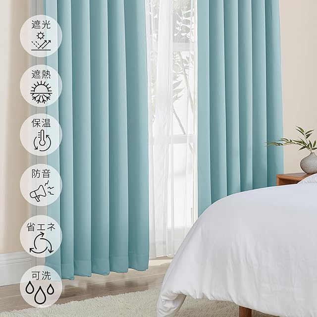 ◆【四季通用】遮光カーテンは生地が高密度のため、熱や冷気を通しにくいことも大きなメリットです。夏はお部屋の室温上昇を、冬は室温低下を防ぎ、冷暖房効率がアップします。特に西日がきついお部屋に遮光カーテンを取り入れれば、月々の電気代節約も期待できます。