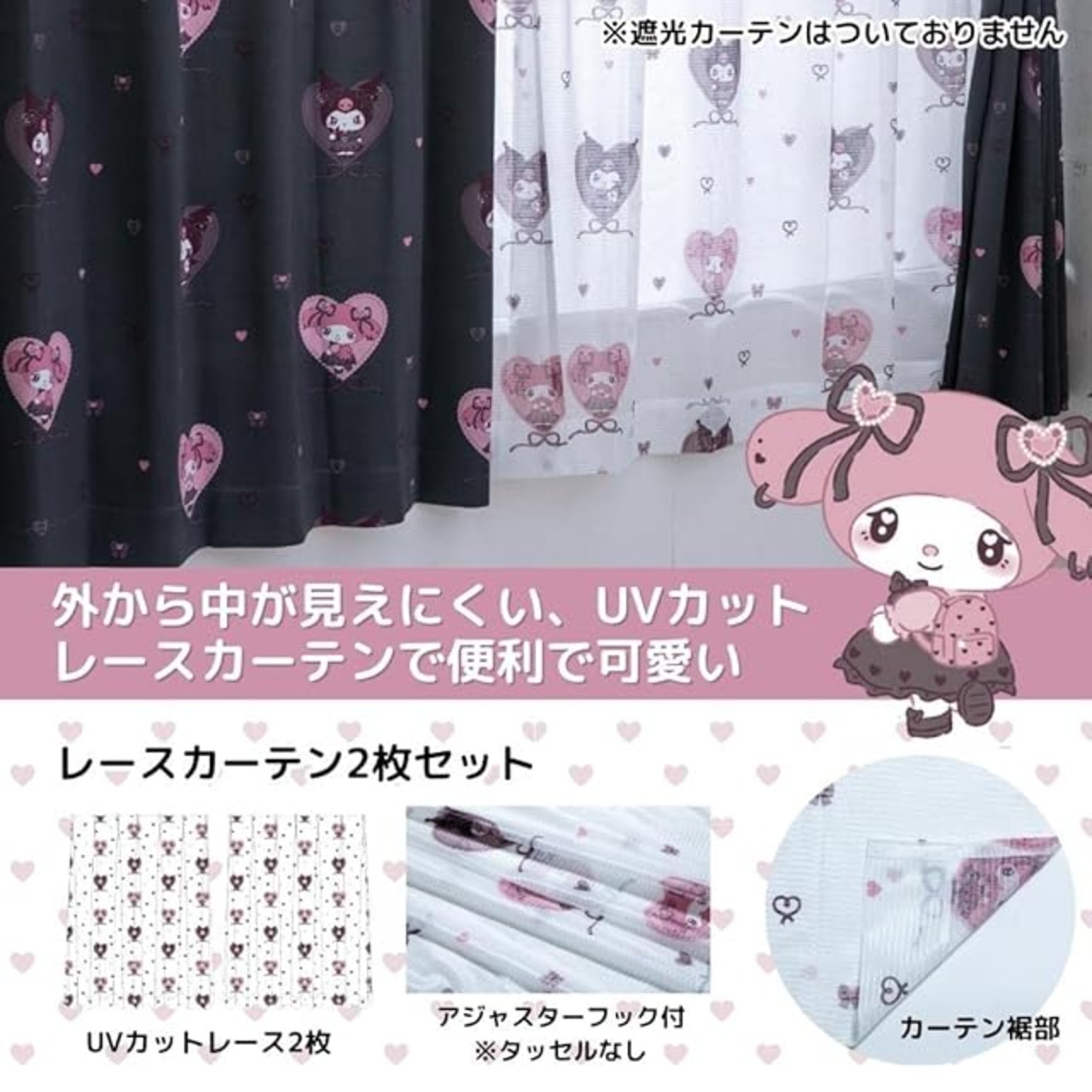 サンリオ(SANRIO) クロミ マイメロディ 真夜中のメロクロ UVカット 外から見えにくい レースカーテン 幅100×176cm丈 2枚セット サンリオ SANRIO マイメロ丸洗い可 キャラクター SB-662-S | ascend