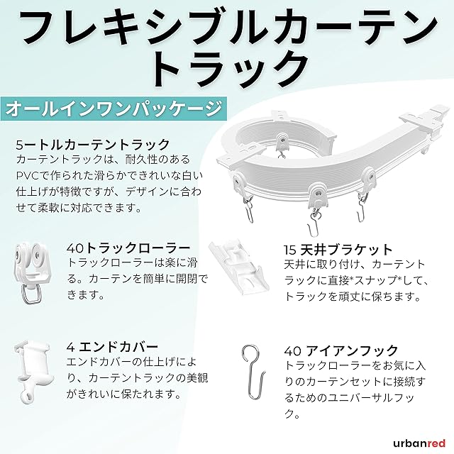 取り付けが簡単:複雑な天井カーテンレールに苦労したことがある方には、約5メートルのフレキシブルカーテンレールがお勧めです。弊社のカーテンレールはスナップ式ブラケット(支持具)とスライド式レールローラーを使って簡単に天井に取り付けられます。