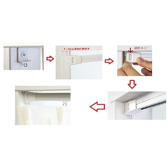 つっぱり式カーテンレール 伸縮タイプ 耐重型 白色 Mサイズ (78~130cm) ネジ・クギ不要 簡単取付