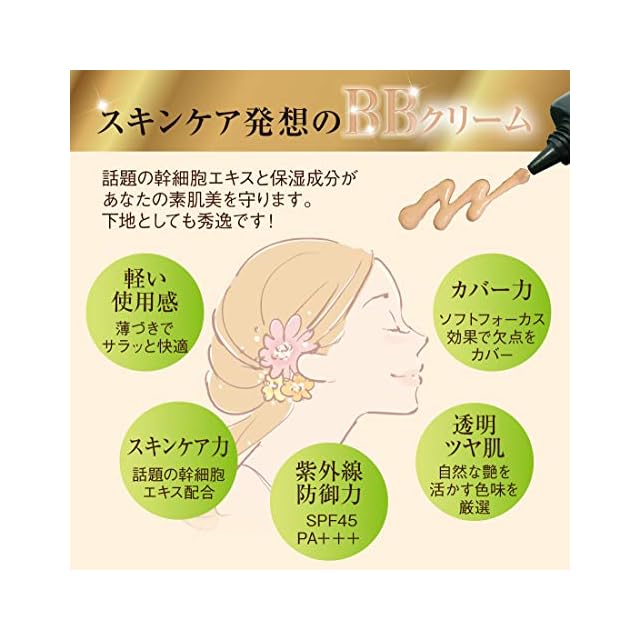【 ひと塗りでキレイを叶える! 】 スキンケア発想のBBクリーム。話題の幹細胞エキスと保湿成分があなたの素肌美を守ります。化粧下地としても秀逸です!