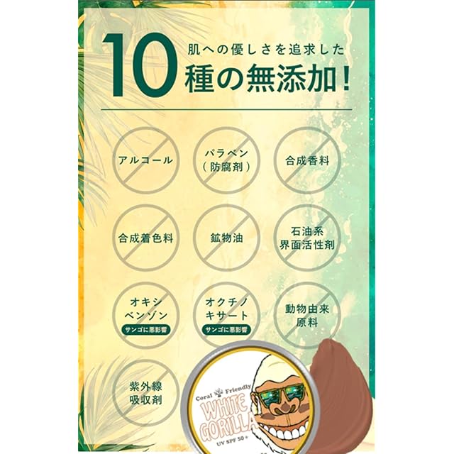 (White Gorilla) ホワイトゴリラ 【45g】 日焼け止め UV SPF50 + 南国ブラウン 褐色の日焼けした肌 小麦肌 専用 珊瑚を壊さない UV バーム ウォータープルーフ CORAL FRIENDRY マリンスポーツ サーフィン 落ちない日焼け止め メンズ (濃い茶色(Brown)) | ascend