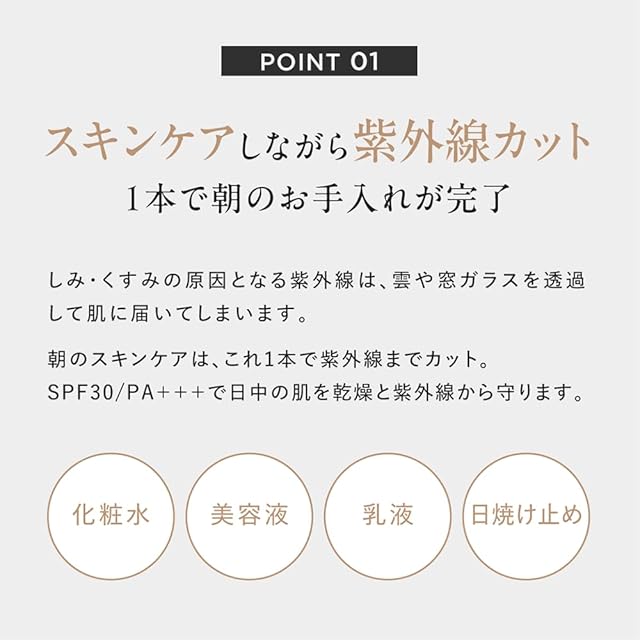 【みずみずしいジェル】 1本でスキンケアと紫外線カットが完結する、こだわり抜いた朝用ジェルUV。 みずみずしくベタつかないのに高機能で、日中も、隙のない肌へ。