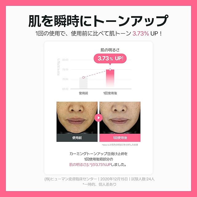 皮膚鎮静に効果的なピンク色のカラミンと無機系紫外線カット成分が配合された低刺激ノンケミカルノンナトーンアップ日焼け止め。