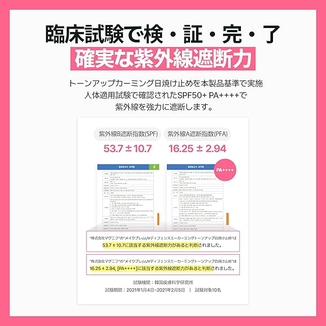 UVディフェンスミーカーミングトーンアップサンクリーム:pH5.5弱酸性日焼け止めで、93%自然由来成分を配合しており敏感肌にもおすすめの日焼け止めです。 #EWG認証を受けた保湿剤です