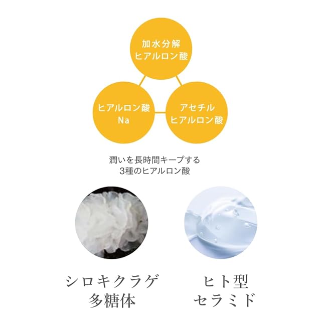 ✅【天然の美容成分と3つのヒアルロン酸を配合】「ヒト型セラミド(※1)」や肌を整える「シロキクラゲ多糖体」を配合。さらにうるおいを長時間キープする「3種のヒアルロン酸(※2)」を贅沢に配合。UVケアをしながら、しっとりとしたうるおいを与えます。 (※1)セラミドNP、セラミドNG、セラミドAP (※2)加水分解ヒアルロン酸、ヒアルロン酸Na、アセチルヒアルロン酸