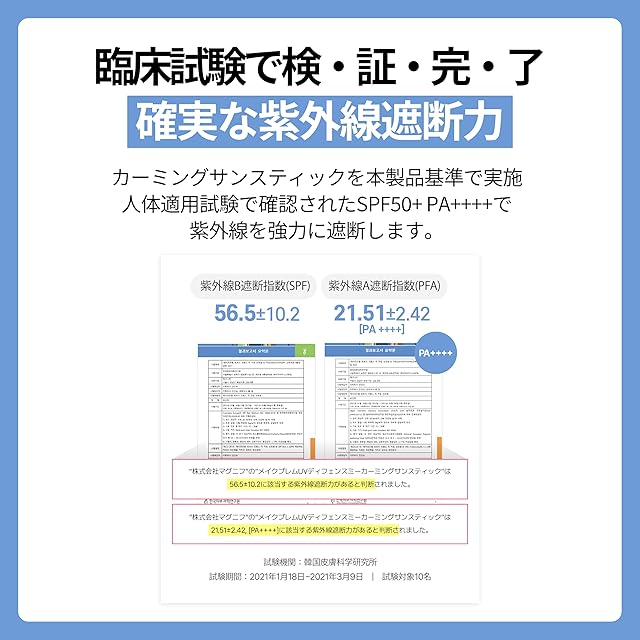 特徴:1)ノンナノ/ジンクオキサイド配合で敏感な肌でも安心して使用できます。 2) 肌がベタつかず、ベルベットのような仕上がりに。 3) Bambusa Vulgaris waterとmake premの特許を取得したFructanをたっぷり含有。 4) UVディフェンスミーカーミングサンスティックは紫外線をはじめとする有害環境から肌を守る「city-proof complex」が含まれています。 5) 臨床試験で、肌への刺激を誘発しないことが立証されました。