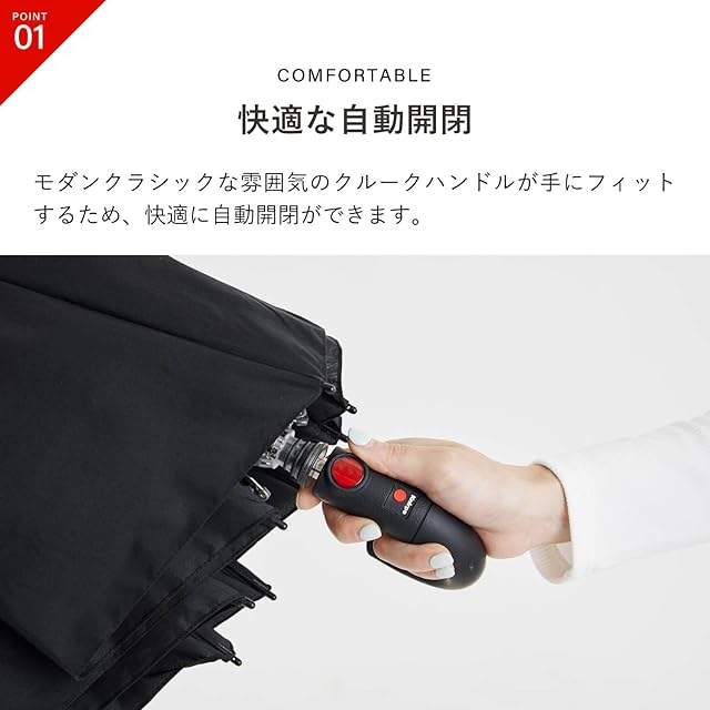 [クニルプス] T280 ミディアムデュオマチック セーフティー クルックハンドル ブラック 折りたたみ傘 KNT280-1000