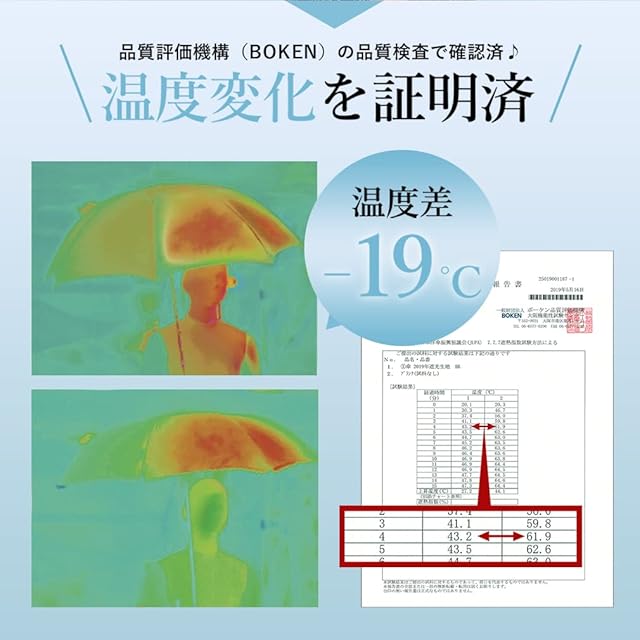 【信頼の老舗メーカーとの共同開発】 創業80年以上続く、老舗の傘メーカーと拘り抜いて作った傘で信頼の安心感。 このショートワイド傘は『意匠権取得済み』なので、他の傘メーカーには作れないんです! 【高い素材品質基準】 検査機関で紫外線遮蔽率指数基準を満たす傘生地を使用し、 UVカット(紫外線遮蔽率)、遮光率ともに最高値と高い遮熱効果を保証します。
