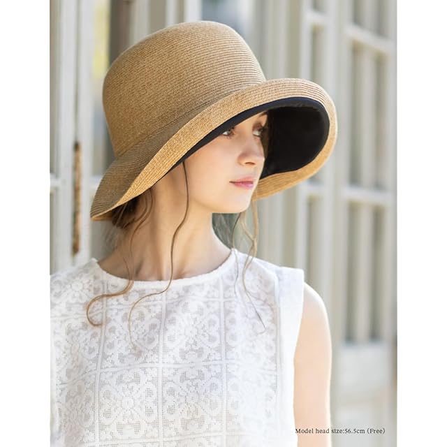 [Loo&c] [ルーアンドシー] 帽子 レディース 大きいサイズ 麦わら つば広 りぼん ラプロスハット uvカット 完全遮光 紫外線対策 ストローハット 接触冷感 春夏 あご紐付き サイズ調整可能【フリー(56-58cm)-ナチュラル】