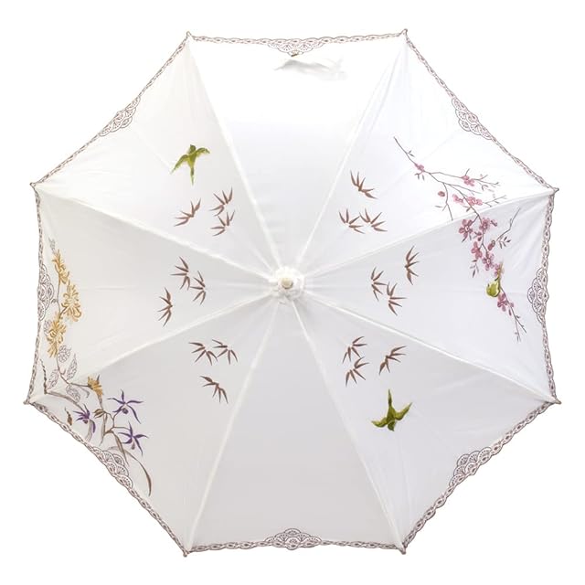 ・デザインは、シノワズリーモダンで人気の高いハチドリが優雅に舞う花鳥刺繍に加えて、宝相華、四君子の全3柄。傘布全面に美しい刺繍が施され、持つだけで優雅な気分を演出します。