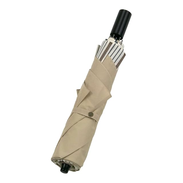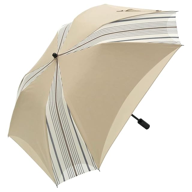 ・無地とストライプ柄を絶妙に組み合わせ、スクエアフォルムでさらにスタイリッシュ度アップ。大判サイズで、長傘のような使い勝手ですが、大き目トートバッグに収納可能な折りたたみショートタイプです。