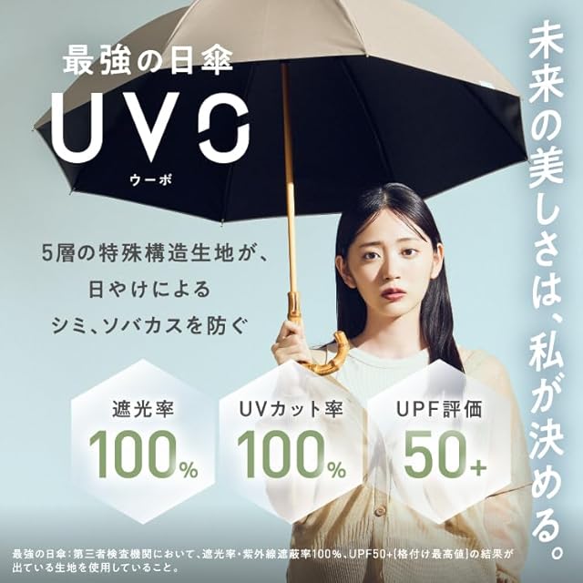【完全遮光100%・UVカット率100%・UPF50+】 UVOの生地は全カラー遮光率・UVカット率100%・UPF50+を取得。 日焼けを防ぐために必要なUVカットの性能を兼ね揃えた、紫外線対策にはピッタリのアイテムとなっています。