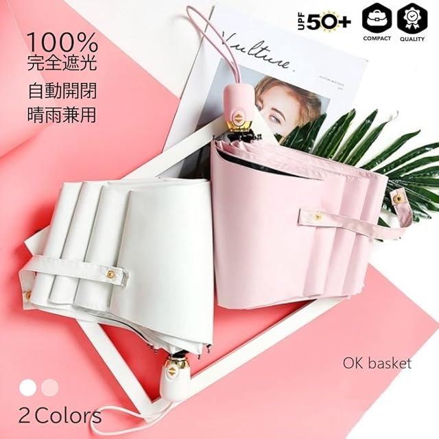 日傘 折りたたみ 折りたたみ傘 ワンタッチ 自動開閉 UVカット 軽量 完全遮光 UPF50+ 遮光率99.9% 高密度NC布 耐風撥水 収納ポーチ付き (ホワイト)【OK basket 】 | ascend