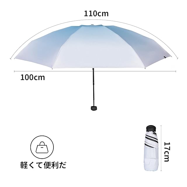 【軽量 持ち運びが容易】超軽量グラスファイバーリブ6本、傘全体の重さはわずか270G。折りたたんだ傘の長さは18.5cmと小さくて持ち運びに便利です。かばんに詰めるのに場所を取らず、通学、通勤、ハイキング、旅行、出張などにご利用いただけます。
