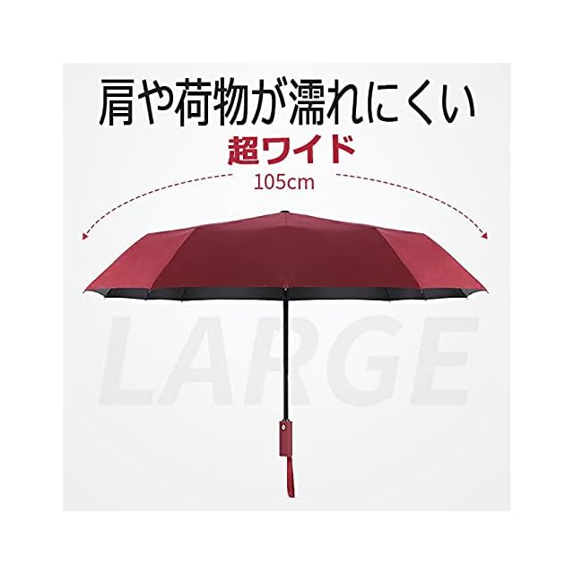 大ぶりの傘■開く直径は105cmで、メンズ向けといったジェンダーにとらわれず、濡れない・雨から守る為に大型化した、おりたたみ傘です。軽く振るだけで雨の水滴を落としてくれる撥水性の高さもポイントです。
