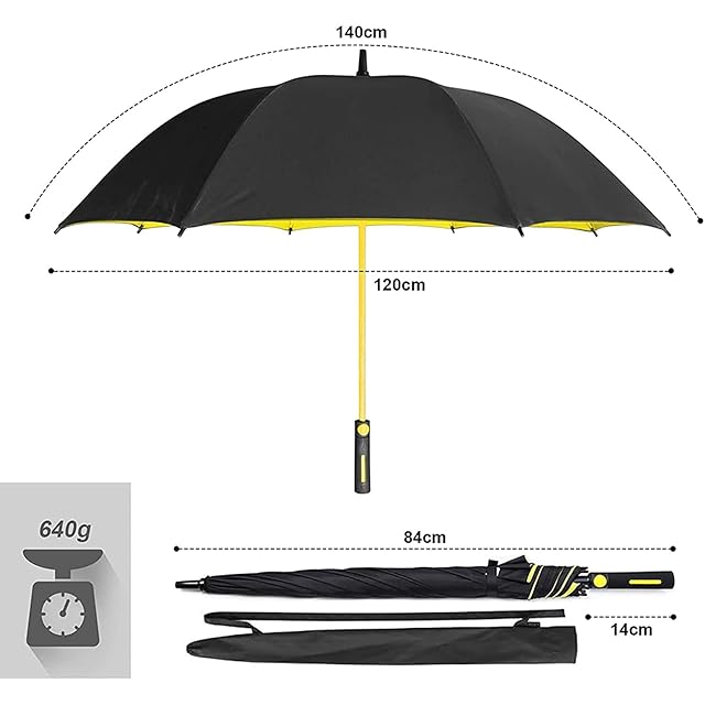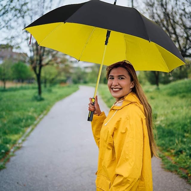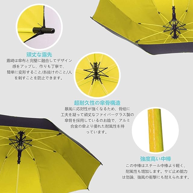 Kaleno 210T高強度グラスファイバーの長傘 超撥水で軽く耐風性に優れ 自動開閉機能付き メンズ・レディース両用 晴雨兼用 Teflon加工で汚れにくく 収納ポーチも付いてお得 (イエロー) | ascend