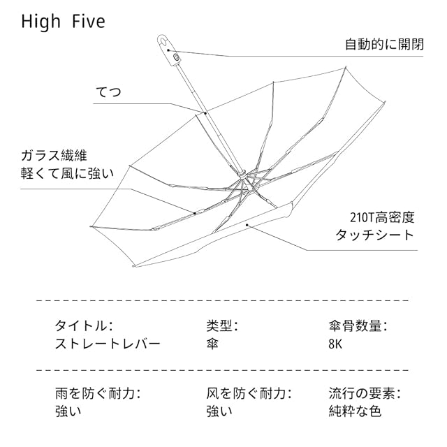 特別なデザイン:ボタンを軽く押すだけで自動的に開閉することができ、片手で操作可能、便利で速い、傘の柄の実用フックのデザイン、リュックサックの外部に掛けることができて、傘の上の雨がリュックサックの内部の物件を浸すことを避けて、乾湿分離して、突然の降雨に直面して速く取ることができます。