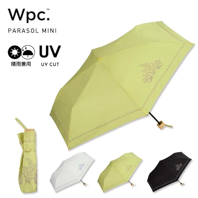 Wpc. 日傘 T/Cすずらん刺繍 ミニ ピスタチオ 折りたたみ傘 50cm レディース 晴雨兼用 花柄 ナチュラル 木製ハンドル 上品 北欧 おしゃれ 可愛い 女性 801-33177-102 | ascend