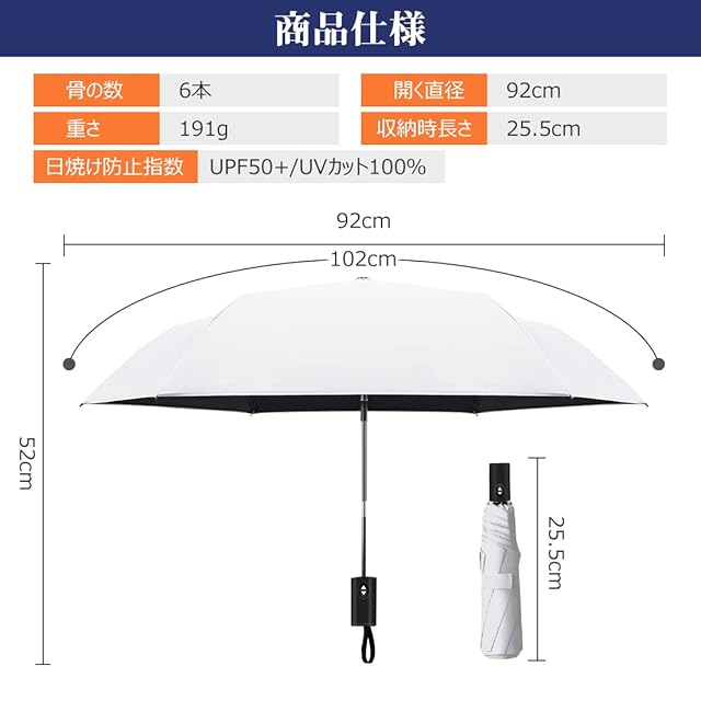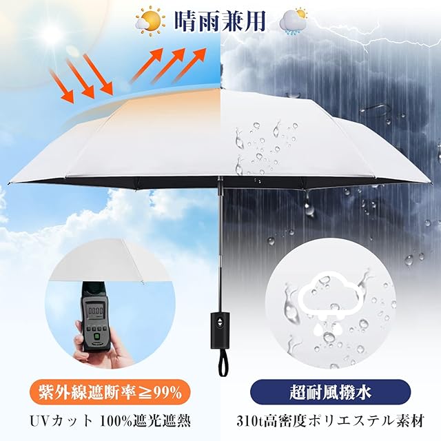 ☂【超耐風撥水】310t高密度ポリエステル素材、通常の折りたたみ式日傘よりも優れた防水機能、雨滴は自動的に傘布で滑り落ちます。雨の後は、軽く振るだけで、水滴が簡単に振り払えます、電車内等の公共の場で、人に迷惑をかけません、バッグに入れても心配ありません。中棒は頑丈航空機用アルミ合金製造、6本の傘骨にグラスファイバーと航空機用アルミ合金を使用しました。耐久性に優れています。強風で裏返っても元に戻ります。