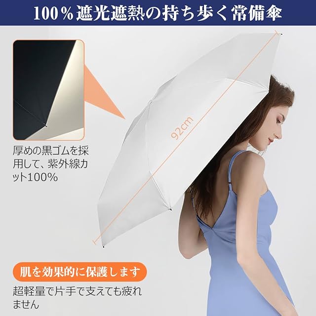 ☂【紫外線遮断・UVカット・完全遮光】多層遮断生地で加工され、裏は黒で地面から照り返された紫外線や赤外線を吸収できます。紫外線カット100%効果、紫外線防止指数最高値UPF50+を実現し、 光透過率0、日差しの中で涼しく保ち、そしてあなたの肌を効果的に保護します。熱い日差しの中でも快適に過ごせて、真夏の日焼け対策、熱中症対策に大活躍する 折りたたみ日傘です。