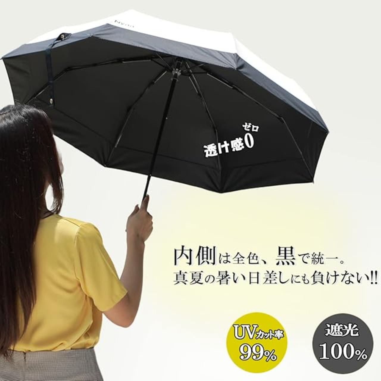 日傘 折りたたみ 晴雨兼用 完全遮光 軽量 折り畳み傘 8本骨 uvカット 紫外線対策 日焼け止め対策 耐風超撥水 防汚 シンプル 雨傘 メンズ レディース 大きめ 丈夫 コンパクト小型 持ち運びやすい 収納ポーチ付き (04.WHITE&BLACK ホワイト&ブラック)