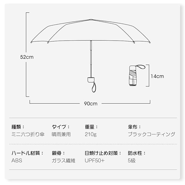 【超撥水性&晴雨兼用】傘生地は210T高密度素材を採用し、優れた撥水性を持っています。雨粒が流れ落ちやすいので、傘を閉じた後、軽く振るだけで、水滴が簡単に振り払えます、電車内等の公共の場で、人に迷惑をかけません