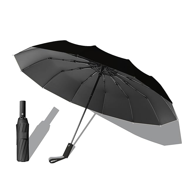 PIPIN 折りたたみ傘 折り畳み傘 晴雨兼用傘 大きい 日傘 12本骨 折畳傘 ワンタッチ 自動開閉 超撥水 メンズ 丈夫 おしゃれ 人気 雨傘 収納袋ケース付き 頑丈 遮光 (ブラック) | ascend