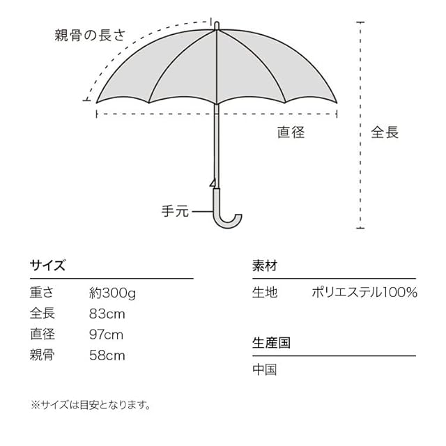 【晴れの日も使える雨傘(晴雨兼用)】 この製品は雨傘としてお使い頂くことを主としていますが、紫外線防止効果があります。 但し、色の濃淡によって紫外線遮蔽率(UVカット率)が異なります。次の数値を目安としてご参照ください。 淡色:約80%、濃色:約90%