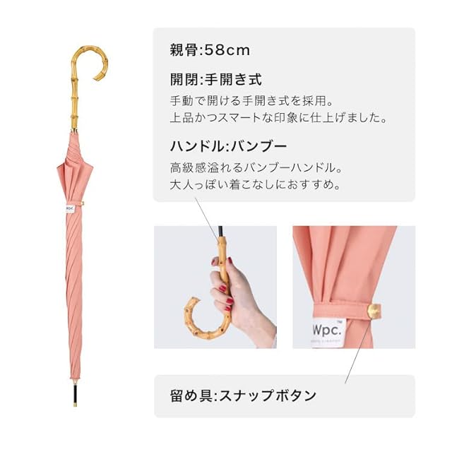 Wpc. 雨傘 ベーシックバンブーアンブレラ パープル 長傘 58cm レディース 晴雨兼用 大きい バンブー 持ち手 シンプル 無地 上品 大人 通勤 通学 おしゃれ 可愛い 女性 RKM-23001-LU | ascend