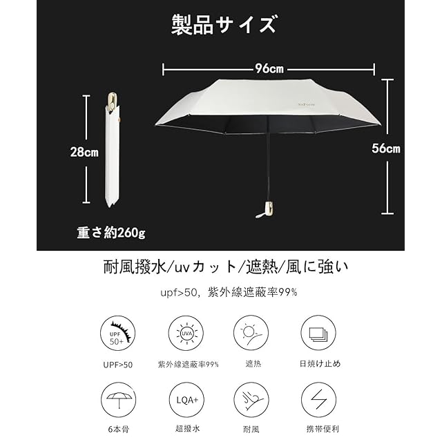 【軽量&携帯便利】 折りたたみ日傘フラットなデザインで、バッグに簡単に入れることができます。折りたたんだ厚さはわずか4cm、長さは27cm、重さは約260gです。超コンパクトボディ 使用·携帯に便利!全天候対応でき、雨の日も雪の日も晴天も使えます。男女兼用ワンタッチ 自動開閉折り畳み傘。通学、通勤、遠足、旅行,出張などの場合がご利用できます。