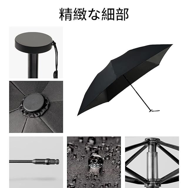 【晴雨兼用、耐風防水】工は210T高密度ポリエステル材料傘布ナノ技術防水、普通の折り畳み傘より優れる防水機能があり、雨滴は傘布で自動的に滑り落ちます。 雨の後、簡単に水滴を振ることができます。 これはレディース晴雨兼用傘です、耐風防水だけではなく、紫外線遮断、完全遮光 遮熱です。 毎日の通勤に使いやすい晴雨兼用傘