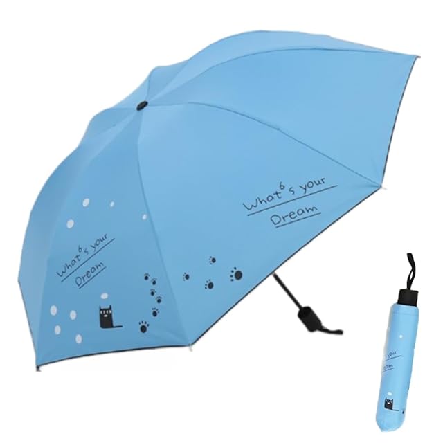 逆折り式 にゃんと 日焼けシミ防止 猫 折り畳み傘 紫外線遮断 全天候対応 ブラックキャット uvカット 晴雨兼用 遮光 断熱 超軽量 雪 遮熱 8本骨 超撥水 (あさぎ)