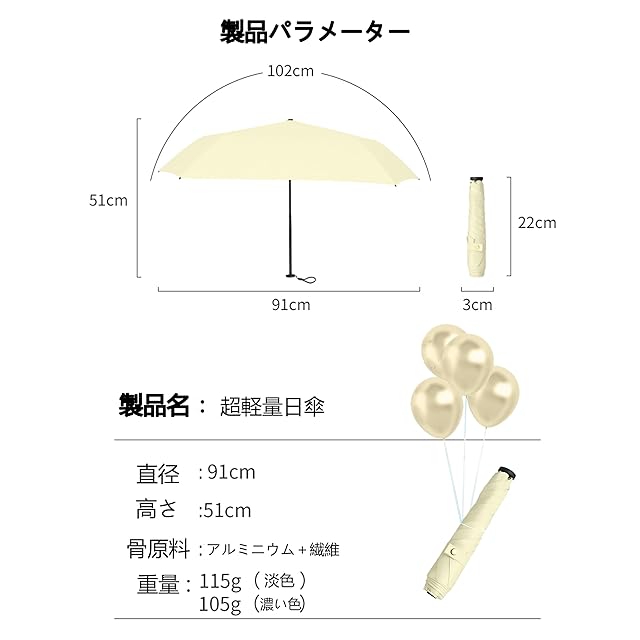 【軽量 携帯便利】 折りたたみ日傘フラットなデザインで、バッグに簡単に入れることができます。折りたたんだ厚さはわずか3cm、長さは22cm、重さは約105g~115gです。 超コンパクトボディ 使用 携帯に便利!全天候対応でき、雨の日も雪の日も晴天も使えます。男女兼用ワンタッチ り畳み傘。通学、通勤、遠足、旅行,出張などの場合がご利用できます。