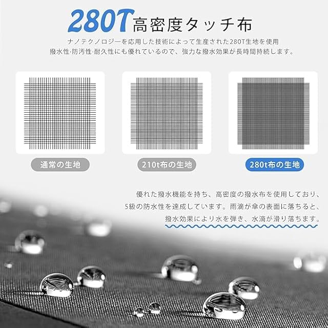 【晴雨兼用傘・最上位の撥水度5級】梅雨にもUV対策にも欠かせない!CICIBELLA折りたたみ日傘は、280T生地の網目がは非常に細く、通常の生地より高密度で、水滴を吸収することなく弾きます。水切れがとても良く、傘を差した後は軽く振っていただくだけOK。カバンにもお気楽にしまうことができます。